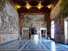 En 1595, une nouvelle série de fresques est commandée à Giuseppe Cesari, dit Cavalier d'Arpin, pour remplacer la précédente. Cesari réalisera des travaux dans toute la structure du palais tels que : la Découverte du Loup (1595-1596), la Bataille entre les Romains et les Veienti (1597) et le Combat entre les Horaces et les Curiaces (1612-1613). Il reviendra pour terminer le cycle en 1636 avec l'Enlèvement des Sabines, Numa Pompilius institue le culte des Vestales à Rome et la Fondation de Rome.
