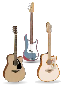 Les guitares peuvent être soit acoustiques, soit électro-acoustiques, en fonction des lieux et des circonstances.