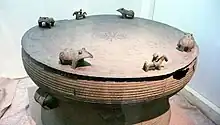 Le Zhuang, utilisent différentes percussion métalliques dont certaines en bronze, d'autres en forme de poisson.