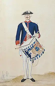 1754-1755. Publication de l'Instruction pour les tambours par le major de Bombelles. Réunion exceptionnelle durant deux mois de tous les tambours-majors des régiments d'infanterie aux Invalides pour apprendre l'Instruction. Ces batteries entrent en service en 1755 avec la nouvelle ordonnance sur l'exercice de l'infanterie.