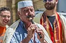 Enfin, la forme de musique afro-maghrébine la plus populaire en Kabylie s'est faite par le biais de musiciens-danseurs de rues : baba-salem ou Akli Wuzzul (esclave du soleil brulant)[5].