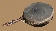 Bien qu'assimilée par le tantrisme tibétain, elle reste une survivance chamanique de cette tradition, par l'usage d'instruments en os humain ou animal et l'omniprésence du tambour (phyed rnga) ou de la cloche (gshang) en tant que véhicule spirituel pour le prêtre. Musique de transe et de rituel, chantée parfois dans les monastères, ou jouée sur des luths (sgra snyan et pi wang), elle est plus simple que la musique liturgique bouddhiste. À l'image des mystères médiévaux, ce genre presque liturgique (mêlant bön et bouddhisme) consistant en des hagiographies vivantes, est connu sous le nom de cham, et est lié à la danse masquée et costumée et à une sorte d'exorcisme. Ce sont des moines qui le pratiquent en dehors des monastères, accompagnés d'ensembles instrumentaux avec rgna, rgya-gling, et dung-chen notamment.