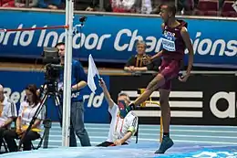 Mutaz Essa Barshim lors des Championnats du monde en salle de Portland en 2016. | |||||||||||||||||||||||||||||