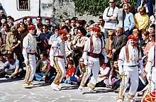 Dansées en cercle sur les places de village, elles consistent en un enchaînement de pas et de changements de sens de rotation qui nécessite une bonne écoute de la mélodie. Le buste reste droit et les bras ballants.