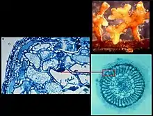 Ces premières associations ont aussi pu permettre la constitution d'un sol résistant mieux aux intempéries, stockant mieux l'eau, tout en améliorant la résistance des plantes au stress hydrique et au froid[18],[19] ou au manque d'azote (chez l'épinette par exemple[20]), leur tenue au vent et au ruissellement, ainsi peut-être que leur résistance aux trop fortes intensités lumineuses, comme c'est le cas des mycophycobiontes de certaines algues de l'estran (ces symbioses, avec des ascomycètes principalement, semblent être apparues secondairement).