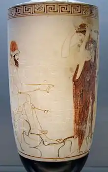 Mort d'Orphée, stamnos à figures rouges d'Hermonax, Ve siècle av. J.-C., musée du Louvre (G 416). Orphée devint cygne.
