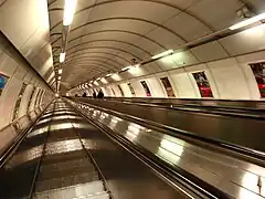 Les accès permettent de rejoindre un hall en relation avec le quai par un escalier mécanique de 87 m. avec 533 marches ce qui en fait un des plus longs de l'Union européenne, de type Victoria FT 732 il progresse à la vitesse de 0,75 m/s, ce qui permet une montée ou une descente de 2 minutes et 15 secondes. Il n'y a par contre pas encore d'ascenseur, ce qui en fait une station non accessible aux personnes à la mobilité réduite.