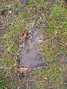 Aspect du sol après enterrement d'un oiseau par des nécrophores
