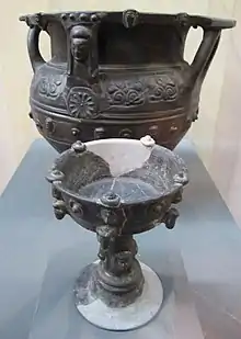 - Groupe de vases étrusco-corinthiens et de bucchero, grands cratères et amphores d'eau (hydria) datables de la première moitié du VIe siècle av. J.-C.