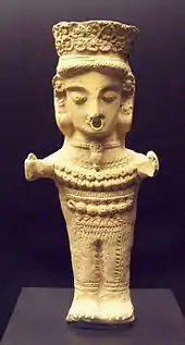 - figures d'argile : représentations d'orants, masculins ou féminins où percent trois influences : égyptisantes, puniques, grecques. Les statuettes sont richement décorées de thèmes d'influences mêlées.