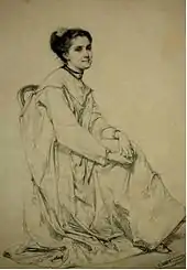 - Musée du Louvre, « Cogniet Léon, école française : Jeune femme, assise devant un chevalet, une palette à la main », sur Louvre : Les collections du département des arts graphiques, (consulté le ).