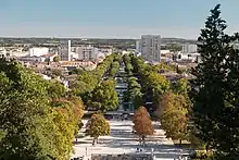 ![]() ![]() ![]() ![]() ![]() ![]() ![]() ![]() De haut en bas et de gauche à droite: les arènes de Nîmes ; la maison Carrée ; l'hôtel Bézard ; la Cathédrale Notre-Dame-et-Saint-Castor de Nîmes ; la tour Magne ; l'église Saint-Paul ; les arènes et la grande roue ; le palais de justice. |