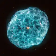 Elle se présente sous la forme d'un nuage elliptique irrégulier[5], qui pourrait s'expliquer par l'interaction entre le matériel de la nébuleuse et les vents stellaires de la naine blanche centrale WC4/OVI[6]. Ce nuage s'étend sur 1,2 année-lumière environ. La température de surface de cette naine blanche est très élevée, environ 90 000 kelvins[4].