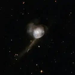 Elle est le résultat d'une fusion entre deux galaxies à disque, résultant dans un starburst récents, dans les régions centrales et continue la formation d'étoiles. La galaxie est encore riche en gaz, et dispose d'un noyau galactique unique[4]. C'est une galaxie active de type Seyfert 2 et elle renferme également des régions d'hydrogène ionisé[1].