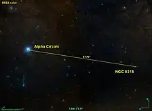 La nébuleuse NGC 5315 est située à environ 5,2 degrés au sud-ouest d'Alpha Circini.
