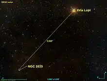 NGC 5925 est situé à environ 3,25 degrés au sud-est de l'étoile Zeta Lupi.