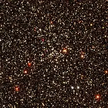 La parallaxe moyenne des étoiles de l'amas a été obtenue des mesures effectuées par le satellite Gaia. Quatre valeurs différentes publiées dans de récents articles ( à ) sont indiquées sur la base de données Simbad[8] : 0,376 ± 0,036 mas[9], 0,365 ± 0,065 mas[10], 0,362 ± 0,060 mas[11],[12] et 0,362 ± 0,003 mas[13]. La valeur moyenne de la parallaxe est égale à 0,366 3 ± 0,041 0 mas, ce qui correspond à une distance de 2 730 ± 51 pc.