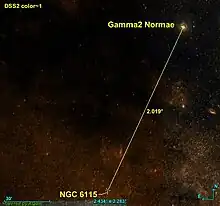 NGC 6115 est situé à environ 2,0 degrés au sud-est de l'étoile Gamma2 Normae.