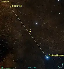 NGC 6178 est situé dans la constellation du Scorpion près de la frontière de la constellation de la Règle à environ 2,4 degrés au nord-est de l'étoile Epsilon Normae.