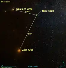 NGC 6208 est situé à environ 1,75 degré au sud-ouest de l'étoile Epsilon1 Arae et à 2,7 degrés au nord-ouest de Zeta Arae.