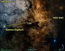 NGC 6451 est situé à environ 3,3 degrés au nord-ouest de l'étoile Gamma Sagittarii.