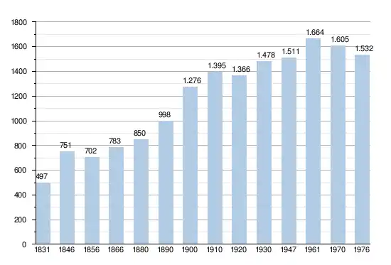 - Source: DGS, 1831 à 1970=recensements population, 1976= habitants au 31 décembre