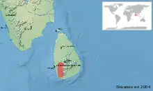 Cette espèce est endémique du Sud-Ouest du Sri Lanka[1]. Elle se rencontre entre 60 et 1 200 m d'altitude.