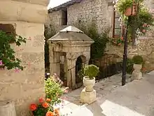 Sculpture sur un linteau d'un passage (haut du bourg).