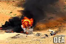 L'opium est ainsi lié à la guerre d'Afghanistan. En 2008, Rahim Wardak, le ministre afghan de la Défense, a demandé à l'OTAN de l'assister, sur demande au cas par cas des autorités afghanes, dans les opérations contre les trafiquants de drogue, qui prennent ainsi une tournure militaro-policière[15]. Plusieurs Afghans ont été jugés et condamnés aux États-Unis, dont Bashir Noorzai (en) et Baz Mohammed, les deux en 2005[16]. La Drug Enforcement Administration participe ainsi aux opérations sur le terrain, avec au , 96 agents dans le pays qui ont rejoint leurs homologues afghans et les forces de l'OTAN dans plus de 80 opérations combinées l'an dernier et déclarant que les saisies d'opium en Afghanistan ont grimpé de 924 % entre 2008 et 2009[17], telles une en où plus de 50 tonnes d'opium et 1,8 tonne d'héroïne ont été détruites et 17 talibans tués[18].