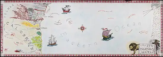 La terre d'Aslan se trouve à l'extrémité est, au-delà du grand océan.