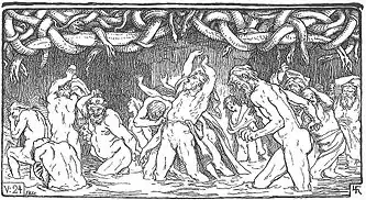 « Sur les rivages des Nastrandir s'élève une halle grande et sinistre, dont les portes sont orientées au nord. Elle est entièrement tressée de dos de serpents, et leurs têtes, qui toutes sont tournées vers l'intérieur, crachent du venin, en sorte que le long de la halle coulent des fleuves de venin, dans lesquels marchent les parjures et les meurtriers[7]. »