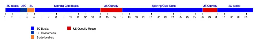 | Bastia-Borgo | 11 | 12 | 17 | 12 | 7 | 7 | 9 | 11 | 7 | 9 | 11 | 8 | 9 | 12 | 13 | 14 | 12 | 13 | 13 | 14 | 13 | 13 | 14 | 14 | 14 | 15 | 15 | 16 | 16 | 17 | 16 | 16 | 17 | 16 | 10 | |