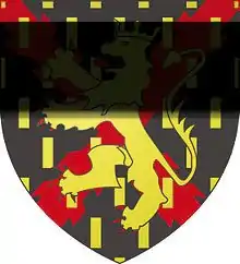 - Les armoiries de Franche-Comté : D'azur semé de billettes d'or au lion du même, armé et lampassé de gueules, brochant sur le tout au même titre que son drapeau.