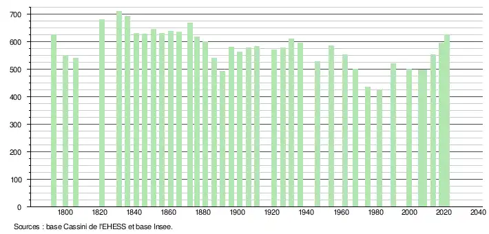 (Sources : Ldh/EHESS/Cassini jusqu'en 1999[33] puis Insee à partir de 2006[34].)
