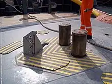 On peut dire également que les innovations majeures en matière de sécurité sont le fait des Norvégiens. Les bittards hydrauliques sont un bon exemple. Ces bittards sont de deux types : les towing pins et les shark jaws . Le rôle des towing pins est de maintenir le câble au centre du navire et éviter que la remorque ou le câble d'ancre ne passe sur le côté du navire. Auparavant ces bittards étaient de simples tubes renforcés qu'il fallait installer, à la main, dans des encoches prévues à cet effet sur le pont, au prix d'efforts épuisants pour l'équipage et, avec en prime, le risque de les voir sauter en cas de forte tension. Ce sont maintenant des pièces forgées qui montent et descendent à la demande, commandées depuis la passerelle ou le pont. Elles peuvent être pourvues de coiffes qui empêchent le câble de passer par-dessus ces pins. Les shark jaws sont aussi des bittards hydrauliques pourvus d'encoches calibrées qui permettent d'immobiliser les maillons des chaînes ou les cosses des câbles pour permettre leur connexion ou déconnexion. Avant cela, on utilisait le pelican hook, fixé à un câble de retenue, qui était en fait comparable à un stoppeur de chaîne d'ancre. Ce système très dangereux a été à l'origine de nombreux accidents. Le modèle shark jaw permet de travailler aujourd'hui en sécurité.
