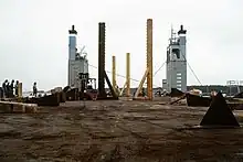 - (en) Preparing rig for dry tow Reportage photos sur le chargement d'une plate-forme pétrolière par le Mighty Servant 3.