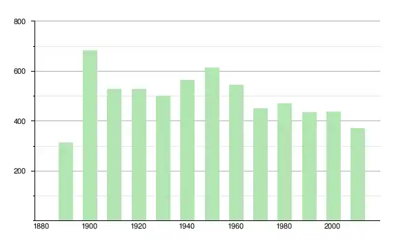 | 1960 | 545 | ▼ −11,38 % | |