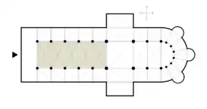 ![]() Vaisseau central (forme avec les collatéraux la nef) |