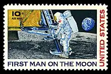 Neil Alden Armstrong, né le à Wapakoneta dans l'Ohio aux États-Unis et mort le à Cincinnati dans le même État, est un astronaute américain, pilote d'essai, aviateur de l'United States Navy et professeur. Il est le premier homme à avoir posé le pied sur la Lune le à 2 h 56 UTC, durant la mission Apollo 11, prononçant alors une phrase restée célèbre : « That's one small step for [a] man, one giant leap for mankind » (en français : « C'est un petit pas pour [un] homme, [mais] un bond de géant pour l'humanité »).
