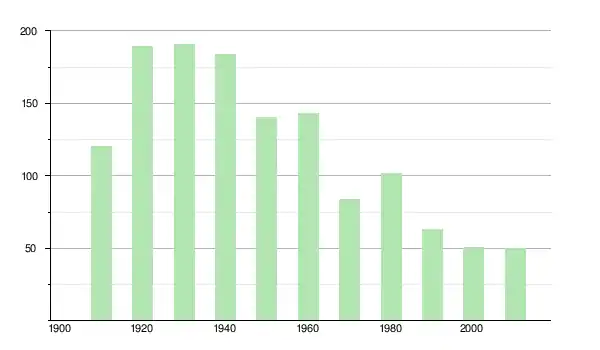 | 1950 | 140 | ▼ −23,91 % | |