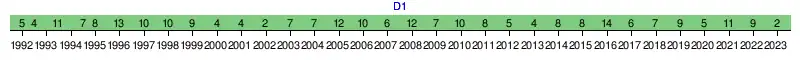 | 1994-1995 | 7e | 31 | 30 | 10 | 11 | 9 | 26 | 27 | -1 | Huitièmes de finale | |