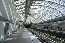 Elle dispose des deux voies de la ligne encadrées par deux quais latéraux. Les voies se prolongent en voies de garage équipées d'un appareil de voie au-delà de la station[1].