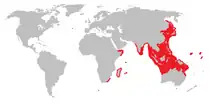 Aire de répartition de la raie pastenague à points bleus