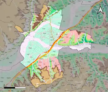 La superficie cadastrale de la commune publiée par l'Insee, qui sert de référence dans toutes les statistiques, est de 25,82 km2[7],[14],[Note 2]. La superficie géographique, issue de la BD Topo, composante du Référentiel à grande échelle produit par l'IGN, est quant à elle de 25,87 km2[5].