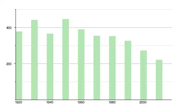 | 1960 | 390 | ▼ −12,75 % | |