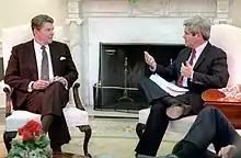 En , il a été accusé par Elliott Abrams, dans la National Review, d'avoir exagéré son soutien à Ronald Reagan et sa participation à la lutte contre l'URSS[21].