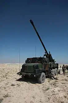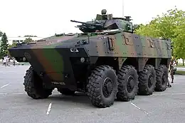 - l'Engin blindé de reconnaissance et de combat Jaguar[70], équipé d'une tourelle intégrant le canon de 40 CTAS, tourelle habitée à deux membres d'équipage.