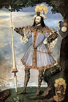 - Le plus ancien exemple connu en est le portrait de Henry Wriothesley, 3ecomte de Southampton, daté de 1594 et conservé au Victoria and Albert Museum de Londres dans lequel le visage du modèle est encadré par ses cheveux frisés comme le voulait la mode de l'époque