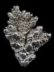 Nodule de nickel pur (99,9 %), raffiné par électrolyse, à côté d'un cube d'1 cm³ | |||||||||||||||||||||||||||||||||||||||||||||||||||||||||||||||||||||||||||||||||||||||||||||||||||||||||||||||||||||||||||||||||||||||||||||||||||||||||||||||||||||||||||||||||||||||||||||||||||||||||||