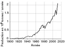 | Chaleur massique | 440 J·kg-1·K-1 à 20 °C[4] | ||||||||||||||||||||||||||||||||||||||||||||||||||||||||||||||||||||||||||||||||||||||||||||||||||||||||||||||||||||||||||||||||||||||||||||||||||||||||||||||||||||||||||||||||||||||||||||||||||||||||||
